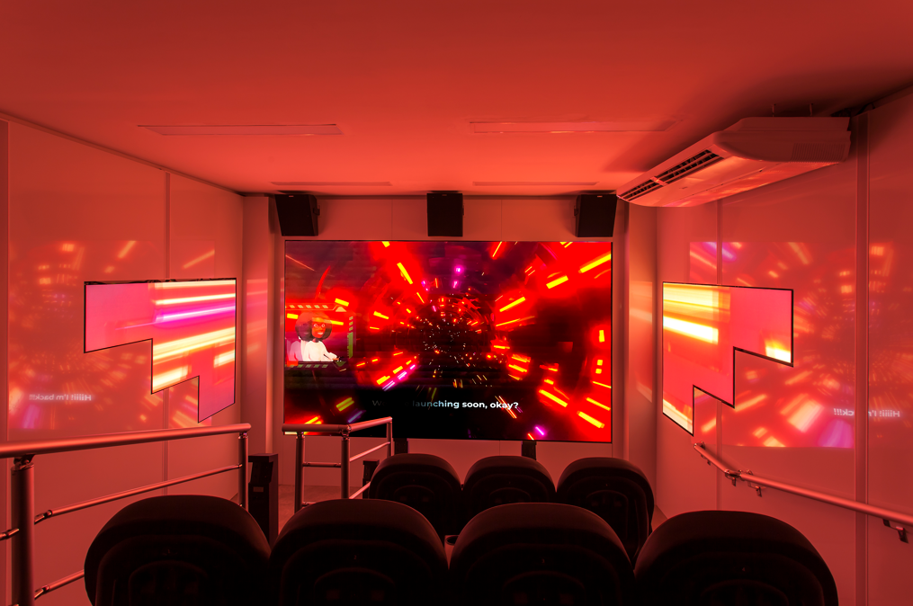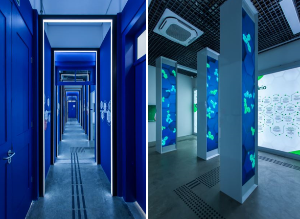 No cinema 6D, o visitante entra em uma experiência para conhecer o corpo humano de uma pessoa vacinada e outra não vacinada | Projeto do escritório Effect Arquitetura com o Instituto Butantan | Foto: Eduardo Pozella
