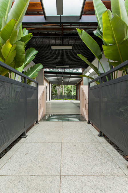 Com 550 m2 de área útil inseridos dentro de uma área verde do Instituto com cerca de 725 mil m2, o casarão teve apenas parte do bloco central demolidos para dar vez a criação de quatro áreas: corpo principal, pátio central, corpo secundário e um novo bloco de sanitários. Erick garante que todas as intervenções possuem uma linguagem propositalmente distinta à arquitetura original, a partir das diretrizes para preservação do existente e adequação ao novo uso proposto.