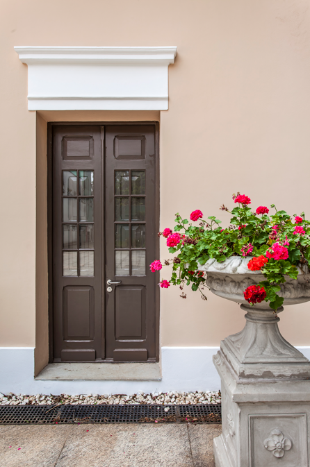 Completamente recuperada, a Casa Rosa mantém sua entrada autêntica e ornamentada | Projeto do escritório Effect Arquitetura com o Instituto Butantan | Foto: Eduardo Pozella