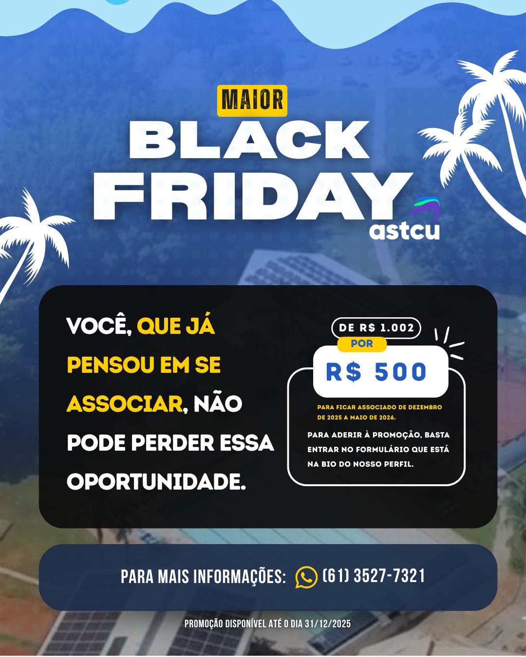 Mais detalhes sobre a promoção: https://sindilegis.org.br/black-friday-astcu-2025-oferece-adesao-ao-clube-com-mais-de-50-de-desconto.